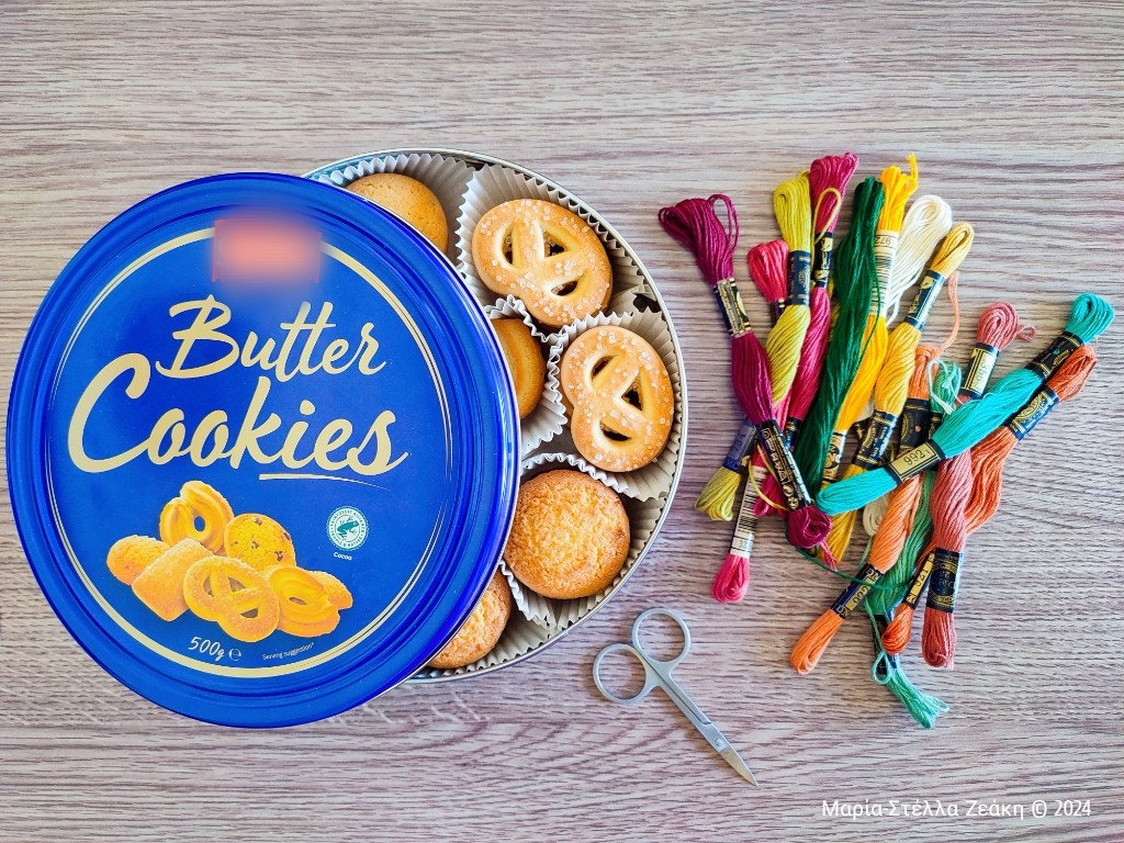 Ψάχνω στο σπίτι να βρω κουτί για να βάλω τις κλωστές. Και όσο ψάχνω σε ντουλάπια να βρω κάτι ωραίο, θυμάμαι το ξυλοσκαλιστό κουτί που τις φυλούσα όταν ήμουν μικρή. Τότε κεντούσα σε σταμπωτό καμβά με πλαστική βελόνα. Τα παιδικά χέρια είναι λίγο άγαρμπα και τα έτοιμα kit με παιδικά μαξιλάρια ήταν η καλύτερη λύση όταν έμαθα να κεντώ. Ένα ξυλοσκαλιστό κουτί ταίριαζε πολύ για να φυλώ τον πολύτιμο θησαυρό τότε, όταν ήμουν 4 χρονών. Αργότερα που μπήκα στην εφηβεία, πήρα προαγωγή και ανέβηκα επίπεδο, σε ύφασμα άιντα και κλωστές DMC. Αν καμιά φορά μου έλειπαν χρώματα για να ολοκληρώσω το σχέδιο του κεντήματος, έπαιρνα από το απόθεμα της μητέρας μου που φυλούσε τις δικές της κλωστές σε κάποιο στρογγυλό μεταλλικό κουτί από βουτήματα βουτύρου. Κατά καιρούς, η νονά της μητέρας μου ξετρύπωνε στα δικά της ντουλάπια παρόμοια μεταλλικά κουτιά και μου τα χάριζε. Τα άνοιγα όλο ενθουσιασμό. – Δεν έχει μπισκότα μέσα, παιδάκι μου, έσπευδε να δικαιολογηθεί. – Το ξέρω! Ήταν γεμάτα κλωστές. Από την προγιαγιά. Χαρά εγώ. Κουνώ το κεφάλι όσο συνεχίζω να ψάχνω, να καθαρίσω τη σκέψη μπας και βρω κάποιο ωραίο κουτί να φυλάξω τις παντέρμες κλωστές. – Άλλο σπίτι, άλλο νοικοκεριό, μουρμουρίζω καθώς κοιτάζω γύρω μου έχοντας εξαντλήσει οποιαδήποτε λύση αποθηκευτικού χώρου. Και ξάφνου το βλέμμα μου πέφτει στο τραπεζάκι του σαλονιού. Σ’ ένα στρογγυλό μεταλλικό κουτί με βουτήματα βουτύρου. Θα γελά η προγιαγιά μου. Και η δικιά σας, είμαι σίγουρη.