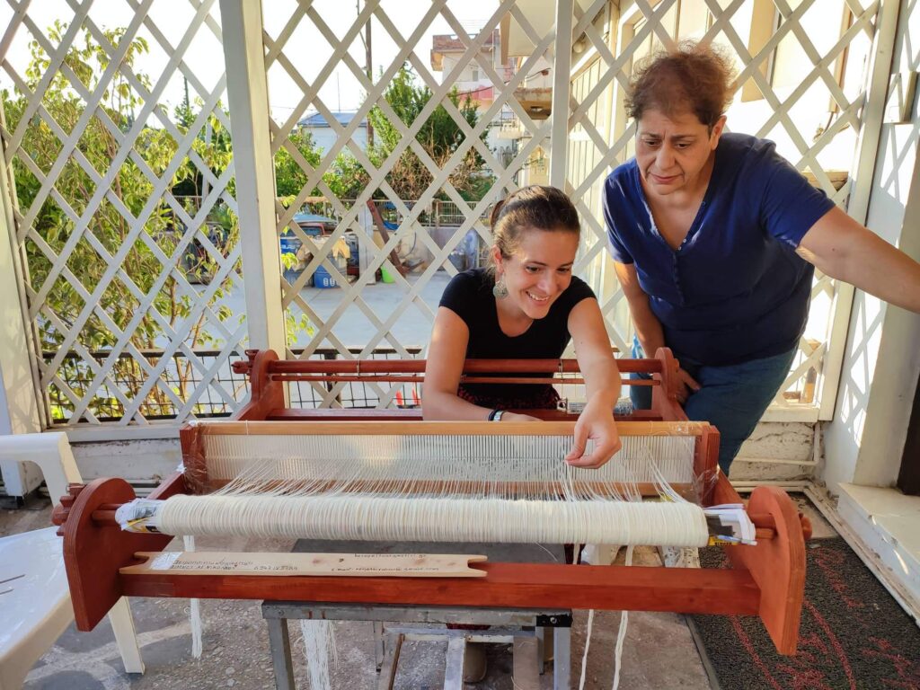 Πριν 10 χρόνια έζησα για λίγο καιρό στον Ζαρό, καταγράφοντας Γητειές της Κρήτης. Κάθε μέρα περνούσα από τη Μαρία Ζαχαριουδάκη που δούλευε τους αργαλειούς της από το πρωί μέχρι αργά. Της έλεγα για την επιθυμία μου να αποκτήσω κάποτε έναν και εκείνη – όλο αγάπη- με άφηνε να κάθομαι σε έναν δικό της. Έτσι, στα μεσημεριανά διαλείμματα που δεν μπορούσα να παίρνω συνεντεύξεις από τους κατοίκους, τρύπωνα στον οντά της Μαρίας και ύφαινα την πρώτη μου κουρελού. Από τότε, έψαχνα και μάζευα εξαρτήματα. Από τις κρητικές μου γιαγιάδες, φίλους, γενναιόδωρες γυναίκες. Όμως η ανάγκη να αποκτήσω δικό μου αργαλειό μεγάλωνε με τα χρόνια. Και κάπως έτσι, βρήκα πριν λίγο καιρό τη Ρένα Τσιράκου με το Χειροποίητο Αργαστήρι στις Λίμνες Μεραμπέλλου. Η Ρένα δημιουργεί επιτραπέζιους φορητούς αργαλειούς και ξέρει όλη τη διαδικασία επεξεργασίας του μαλλιού από την κουρά μέχρι τη βαφή και το μιτοχτένιασμα. Της παρήγγειλα πριν εβδομάδες τον δικό μου κι όταν ήταν σχεδόν έτοιμος, πήγα σαν το κοπέλι να κουκουβίσω δίπλα της. Είχε γεμίσει το πίσω αντί με το στημόνι και με περίμενε να κάνουμε το μίτωμα. Έβλεπα τα δάχτυλά της επιδέξια να περνούν τις κλωστές στο σύγχρονο μικρό εργαστήρι. Κάποια στιγμή με κάθισε στη θέση της, να κάνω εγώ το μίτωμα. Με παρακολουθούσε και με διόρθωνε, προσθέτοντας συμβουλές και μικρά μυστικά. Εκείνη τη στιγμή, θυμήθηκα ένα ξημέρωμα στις Μέλαμπες που με πήραν γιαγιάδες να ξεκινήσουμε το μίτωμα σ’ έναν τρίπαλιο αργαλειό, με 4 μιτάρια κιόλας. Όφου Θε μου η υπομονή ντωνε. Μονάχα τις ξάνοιγα, πού να χώσω εγώ άμαθα τα δαχτύλια μου ‘κεια μέσα. Το να μαθαίνεις μία τέχνη βιωματικά από γυναίκες του τόπου σου είναι ευλογία. Και είναι πολύ, μα πολύ φωτεινό που η χειροτεχνία έχει αρχίσει να παίρνει στην καθημερινότητά μας τη θέση που της αξίζει.