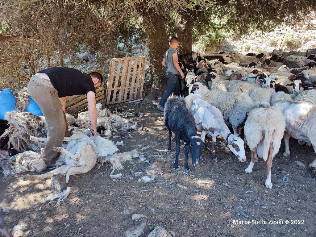 Ρώτησα κάποτε έναν κτηνοτρόφο πόσο κοστίζει το μαλλί από την κουρά των ζώων του. Μου απάντησε ότι δεν το πουλάει πια. Ότι κανείς δεν το αγοράζει πια. – Και τόσο μαλλί πού καταλήγει;, ρώτησα εναγωνίως. – Το πετάμε ή το καίμε, απάντησε με απογοήτευση. Η κουρά των ζώων γίνεται συνήθως στο τέλος της άνοιξης. Όταν το υψόμετρο είναι μεγαλύτερο επιτρέπει στους κτηνοτρόφους να κουρεύουν τα ζώα τους και αργότερα, στις αρχές του καλοκαιριού. Πέρα από την πρακτική της αξία για την υγιεινή και την ανακούφιση των ζώων, η κουρά θα λέγαμε πως κουβαλά παράλληλα κοινωνικές και πολιτισμικές διεργασίες για τους συμμετέχοντες. Συνιστά μία εορταστική τελετουργία στον ποιμενικό κύκλο του έτους, μία ευκαιρία για τον κτηνοτρόφο να καλέσει φίλους και δικούς στα όρη για ένα τραπέζι στη φύση. Μέσα από τέτοιους συμποσιασμούς ένα κοινωνικό δίκτυο ανανεώνει τους δεσμούς του, (επανεκ)τιμά τον ρόλο του στην κοινότητα, ενισχύει την ταυτότητά του στον χώρο και τον χρόνο. Οι καταγραφές και οι συζητήσεις με ηλικιωμένους στα χωριά της Κρήτης αποτυπώνουν μία διαδικασία των παλαιότερων χρόνων που ξεκινούσε από την κουρά και κατέληγε στην ύφανση ενδυμάτων ή άλλων εργόχειρων για το νοικοκυριό. Μία διαδικασία κυκλικής οικονομίας η οποία χωριζόταν σε τρία μέρη: συγκέντρωση μαλλιού, επεξεργασία και αξιοποίηση. Η συγκέντρωση του μαλλιού γινόταν στον χώρο της κουράς. Αν ήταν εφικτό, ξεχώριζαν από την αρχή τα μαλλιά ανάλογα με το χρώμα (άσπρα, μαύρα) και τη φυλή του ζώου (πχ η σφακιανή φυλή έχει διαφορετικό μαλλί από τη γαλλική). Τα καθάριζαν με τα χέρια από χώματα και πέτρες και τα έβαζαν στα τσουβάλια. Στη συνέχεια, αναλάμβαναν οι γυναίκες –ο έμφυλος διαχωρισμός στον επιμερισμό εργασιών δε μένει ποτέ απαρατήρητος στη λαο-εθνο-ανθρωπολογική έρευνα. Πρωταρχικό μέλημα των γυναικών ήταν η αποστείρωση με το βράσιμο των μαλλιών σε μεγάλα καζάνια. Έπειτα τα άπλωναν για το πρώτο στέγνωμα και κατόπιν τα έπλεναν σε τρεχούμενο νερό. Μετά το δεύτερο στέγνωμα ήταν έτοιμα για επεξεργασία. Η επεξεργασία του μαλλιού ήταν μία διαδικασία που συνδύαζε πλήθος εργαλείων και πρακτικών με γνώση και έμπειρα χέρια. Μέρος του μαλλιού μπορούσε να χρησιμοποιηθεί ως γέμισμα για μαξιλάρια ή ως μονωτικό υλικό στο κτίσιμο σπιτιών. Η κύρια χρήση του ωστόσο ήταν στην υφαντική τέχνη. Η επεξεργασία του πυκνού άγριου μαλλιού μέχρι να γίνει λεπτή κλωστή δεν μπορεί να αποτυπωθεί σε λίγες γραμμές στο πλαίσιο ενός άρθρου. Ίσως μία απλή επιγραμματική αναφορά στην αλυσίδα τούτη να μας βοηθήσει να θυμηθούμε ή να κατανοήσουμε το φόρτο εργασιών που απαιτούνταν κάποτε: “οι γυναίκες ξαίνουν το μαλλί με ειδικά χτένια (χειρόχτενα) και το τυλίγουν σε κουβάρια (τουλούπες). Γεμίζουν τη ρόκα και χρησιμοποιούν το αρδάχτι με το οποίο κλώθουν το μαλλί. Σειρά έχει το τυλιγάδι και η ανέμη για το (ξε)τύλιγμα της κλωστής”. Και όταν όλα πια είναι έτοιμα, ετοιμάζεται και ο αργαλειός για να αρχίσουν τα χέρια της υφάντρας να δημιουργούν. Πώς να αποτυπώσεις με λίγες λέξεις τις διαδικασίες που θέλουν μέρες και εβδομάδες για να ολοκληρωθούν. Πρόκειται για εργασίες που απαιτούν πολλά χέρια, πολλές ώρες, πολύ μόχθο. Εργασίες οι οποίες στο τέλος δεν ανταμείβονται ανάλογα. Είναι λοιπόν λογικό επακόλουθο για τους ανθρώπους που ασχολούνται ακόμα με την υφαντική τέχνη να καταλήγουν σε εισαγόμενες πρώτες ύλες ως πιο εύκολη και οικονομική λύση. Κα